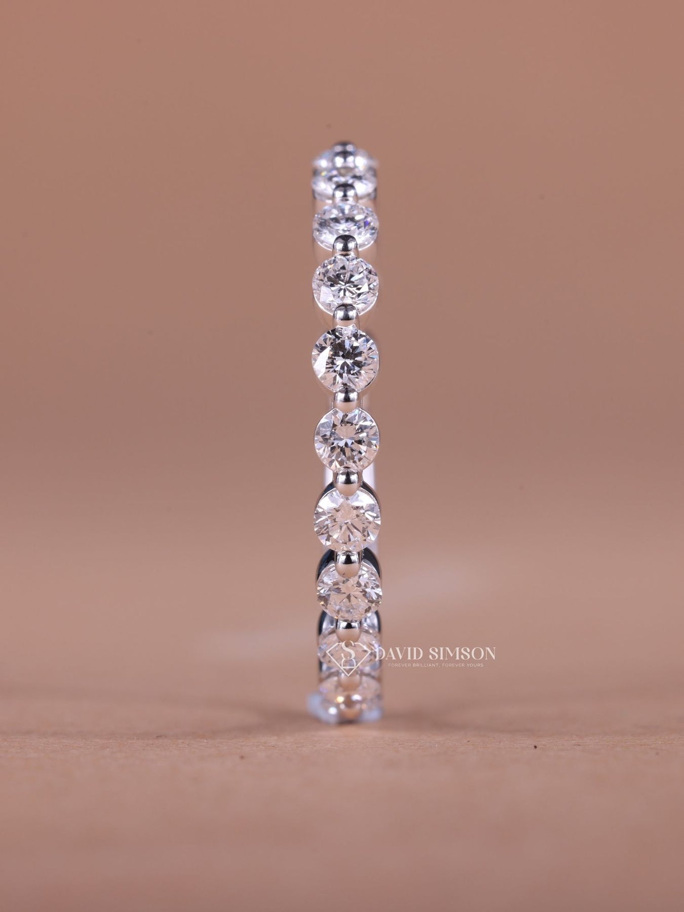 This round cut moissanite diamond half eternity band complements any engagement ring simple or engagement ring gold with timeless elegance. Perfect for an engagement ring stack, it features refined diamond rings designs ideal for diamond rings for women seeking classic diamond rings engagement and stylish diamond rings stack options.