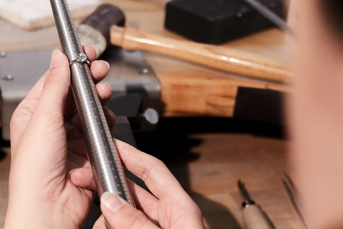 ✧ In some cases, we may simply exchange the original ring for an identical ring in your size instead of resizing. Why? If either a) it would result in a faster turnaround time, or b) the integrity of the design would be affected. An exchange would only apply to bands that are plain gold and don’t feature any stones. And like all of our pieces, the swapped ring would be handcrafted from scratch. Of course, we’ll always contact you if we recommend that route.