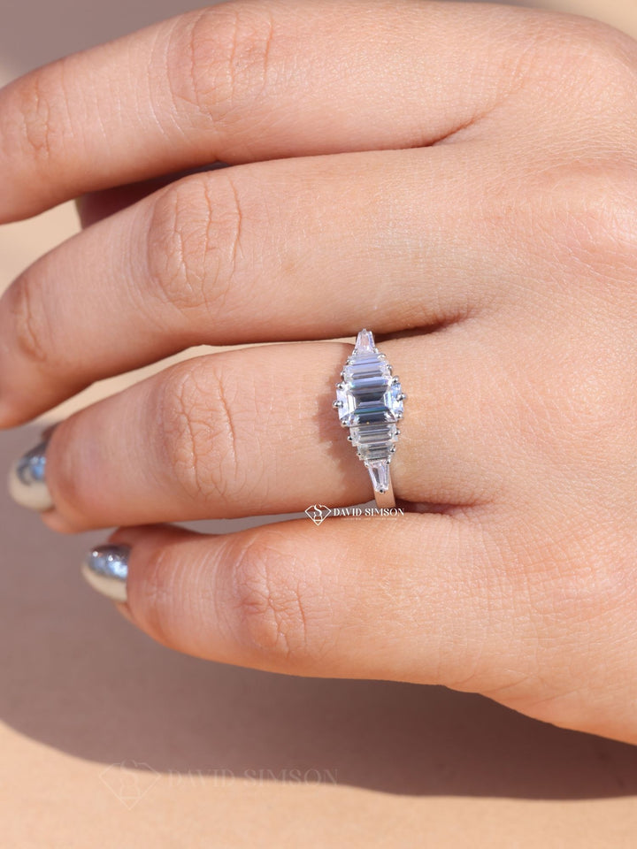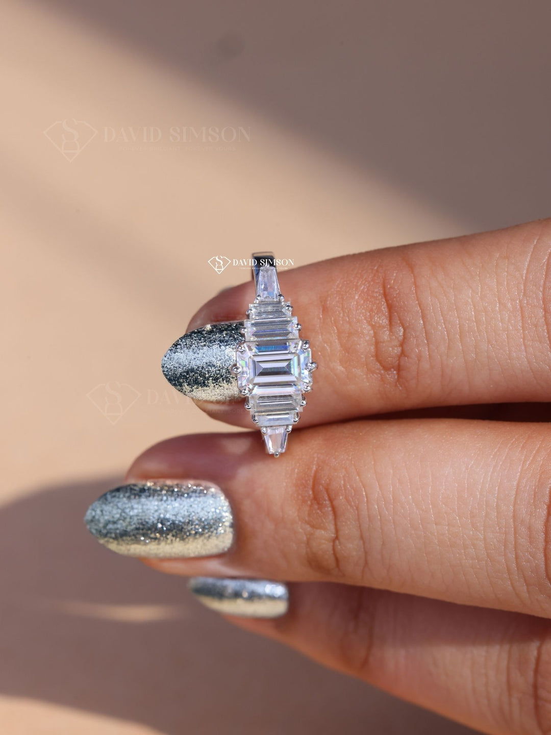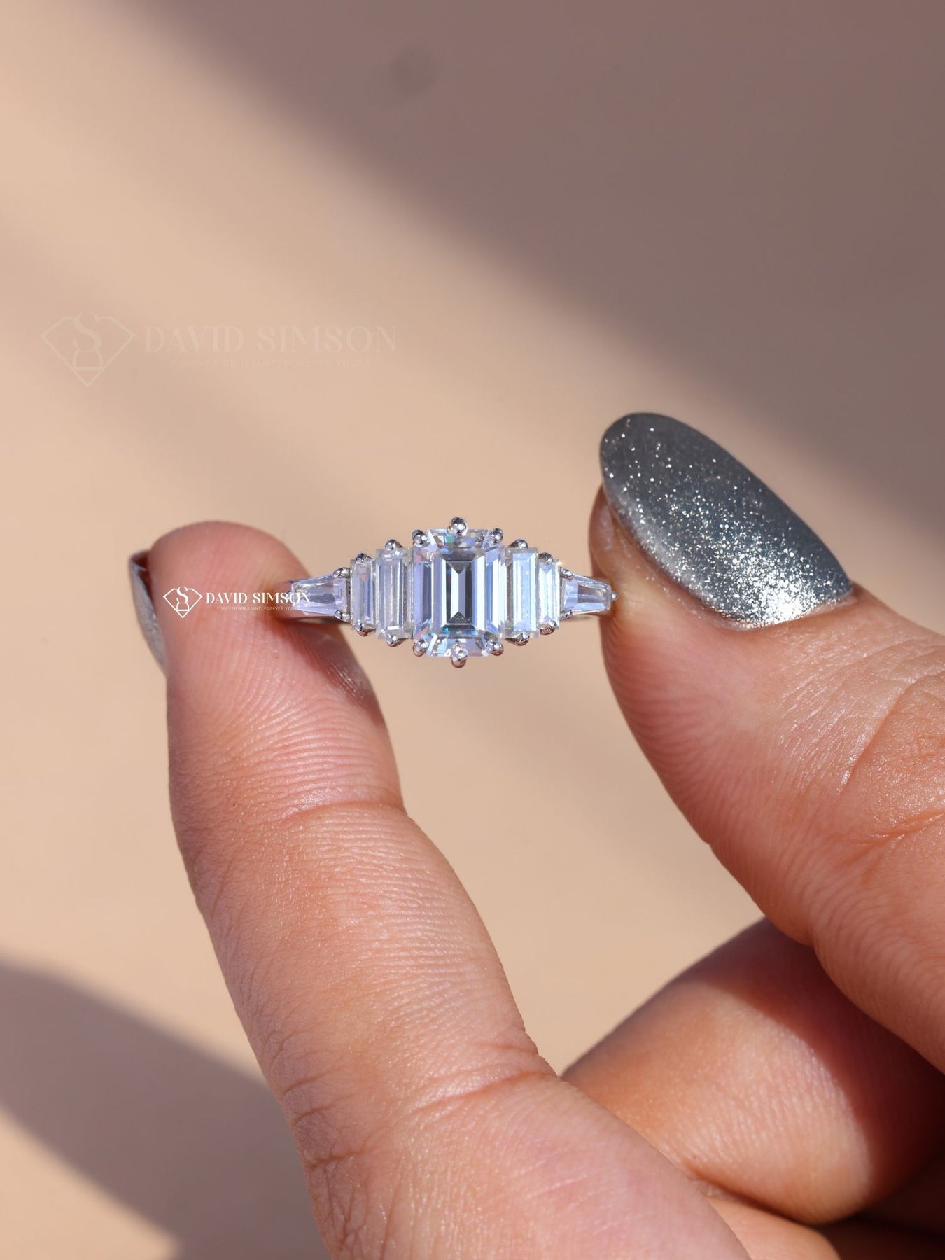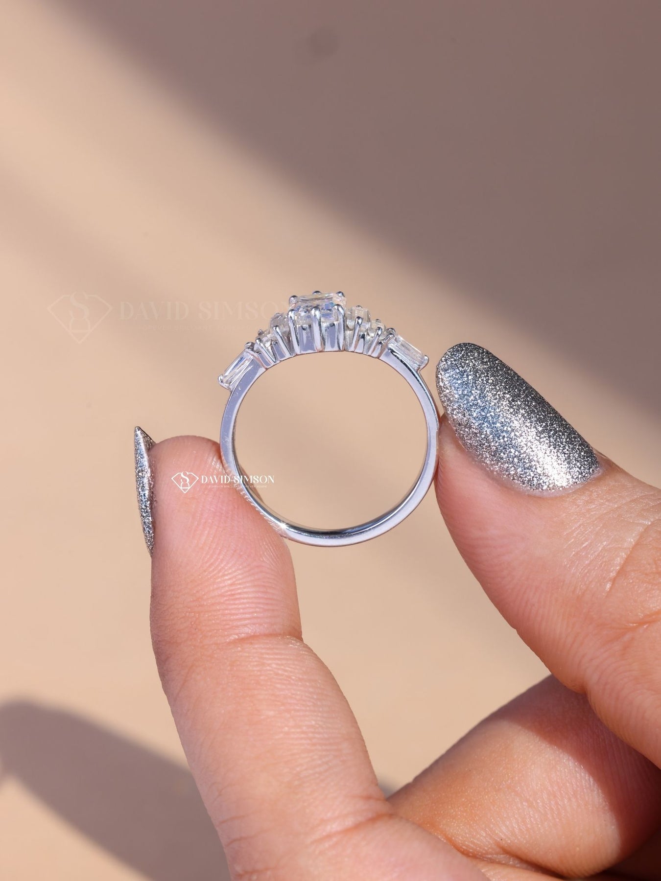 1.0CT-2.0CT Emerald Cut Moissanite Cluster Diamond Engagement Ring