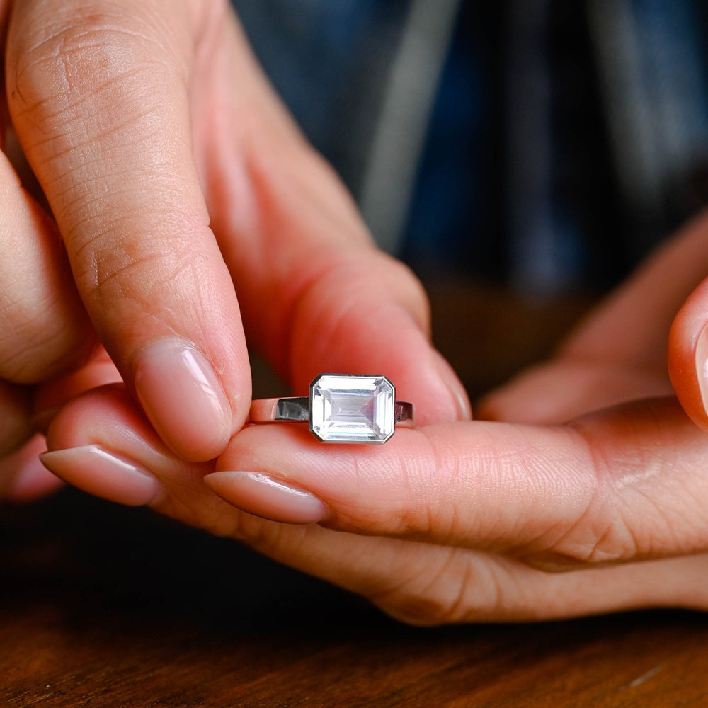 1.0CT-2.0CT Emerald Cut Moissanite Diamond Thick Band Engagement Ring