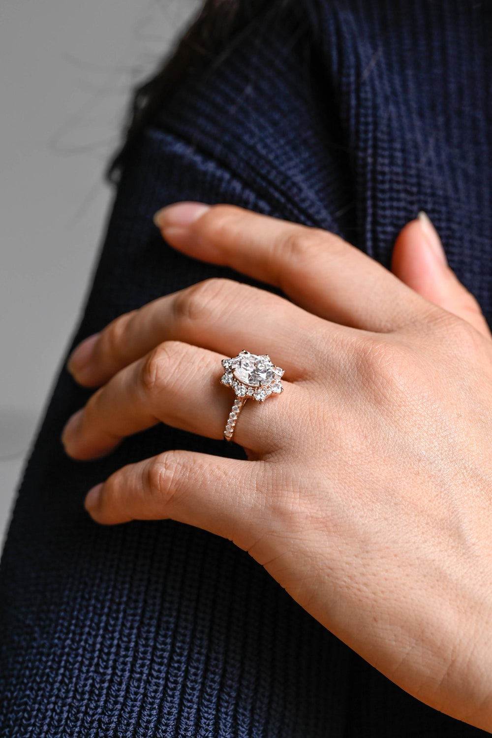 1.0CT-2.0CT Oval Cut Moissanite Diamond Floral Halo Engagement Ring