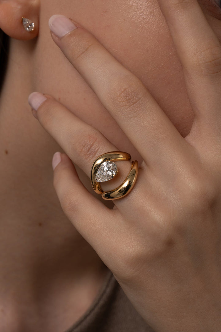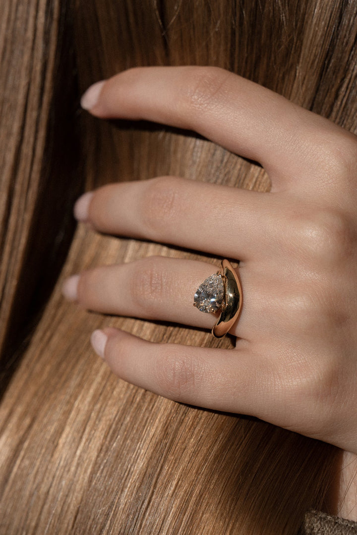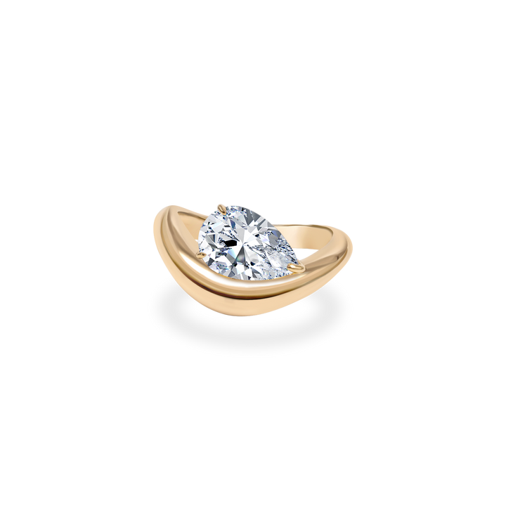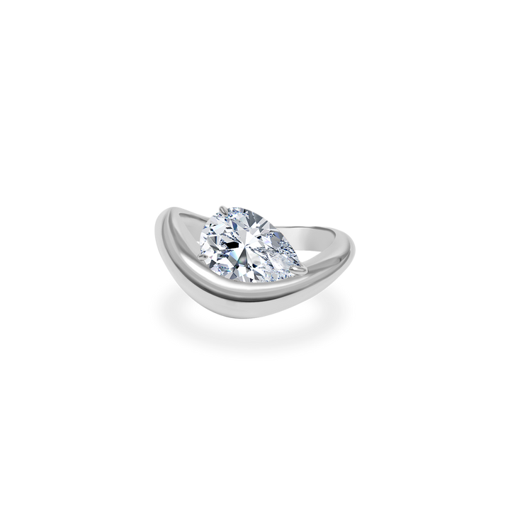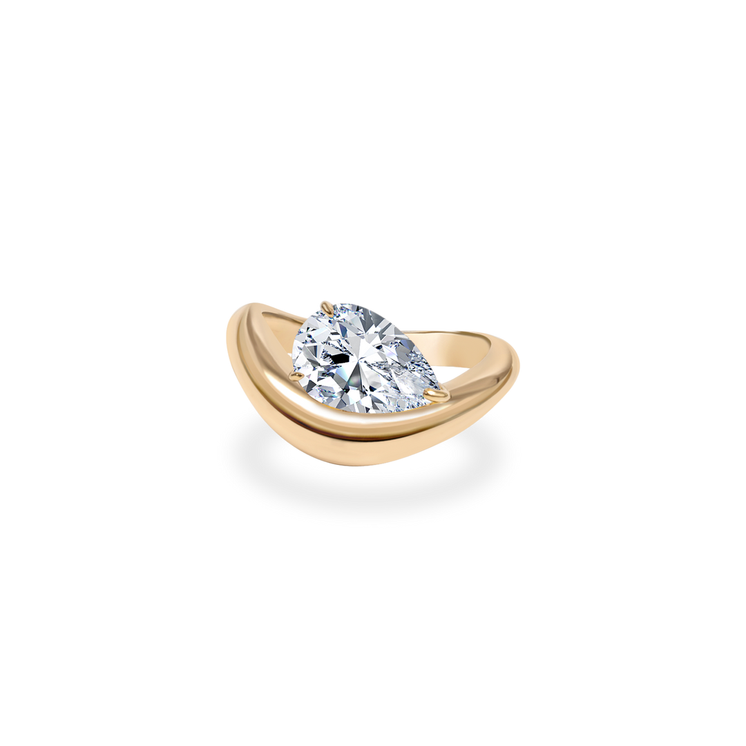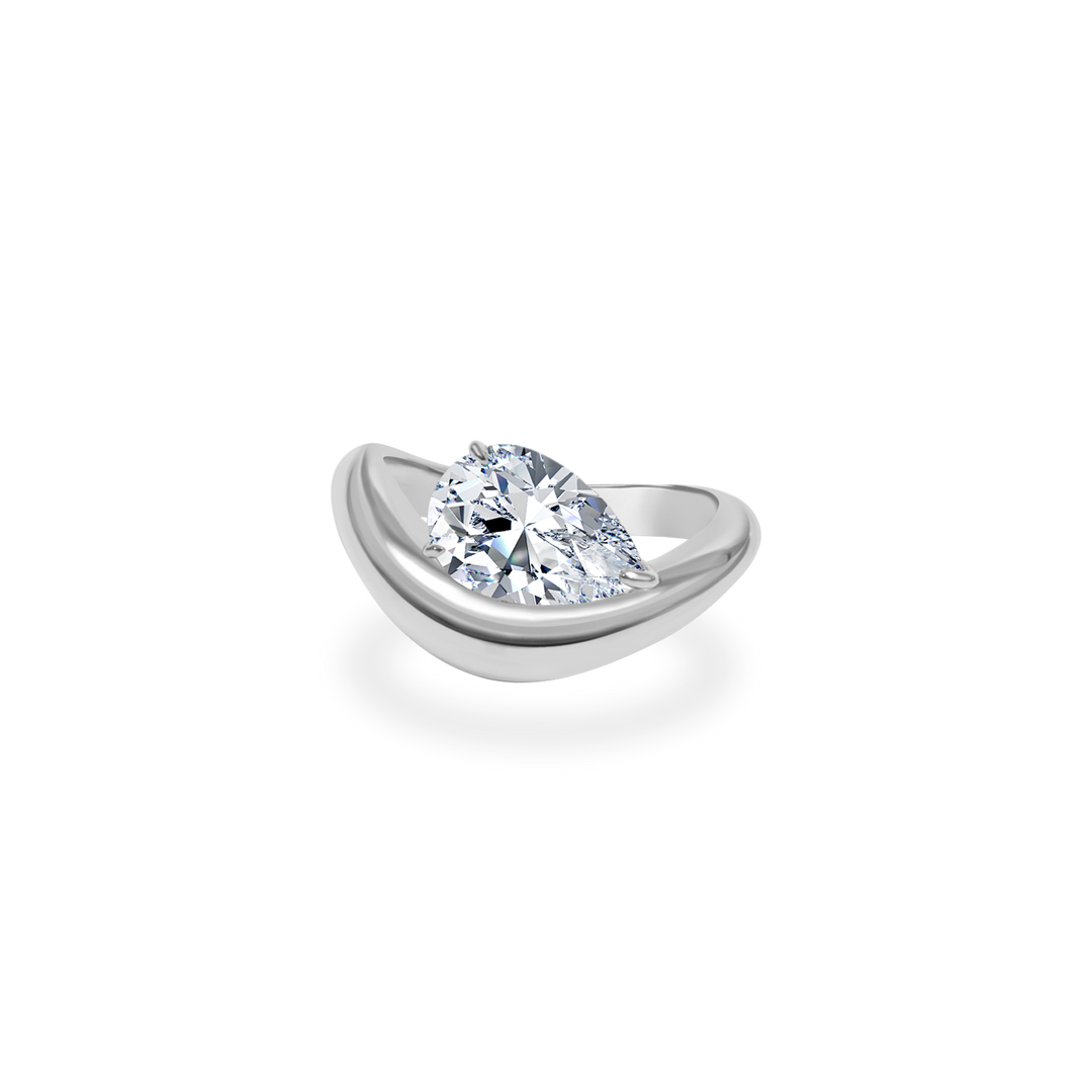 1.0CT-2.0CT Pear Cut Moissanite Diamond Wave Dome Engagement Ring