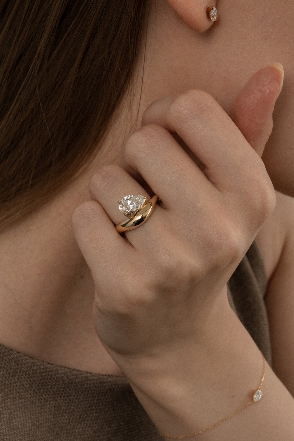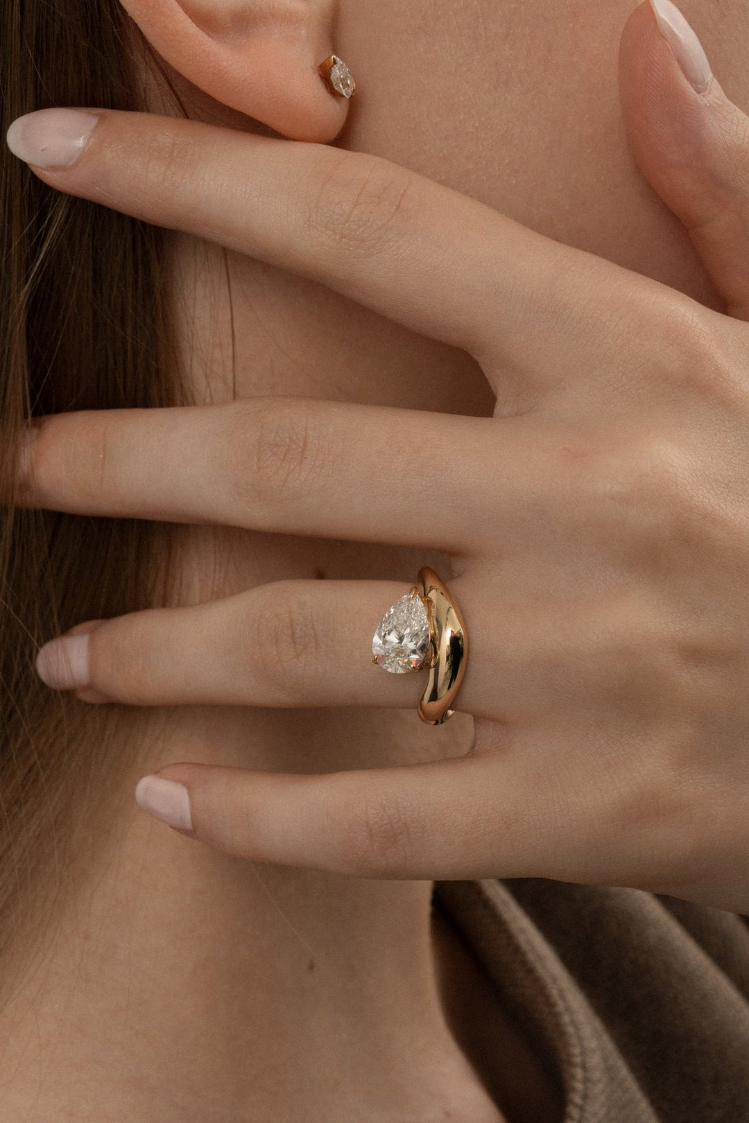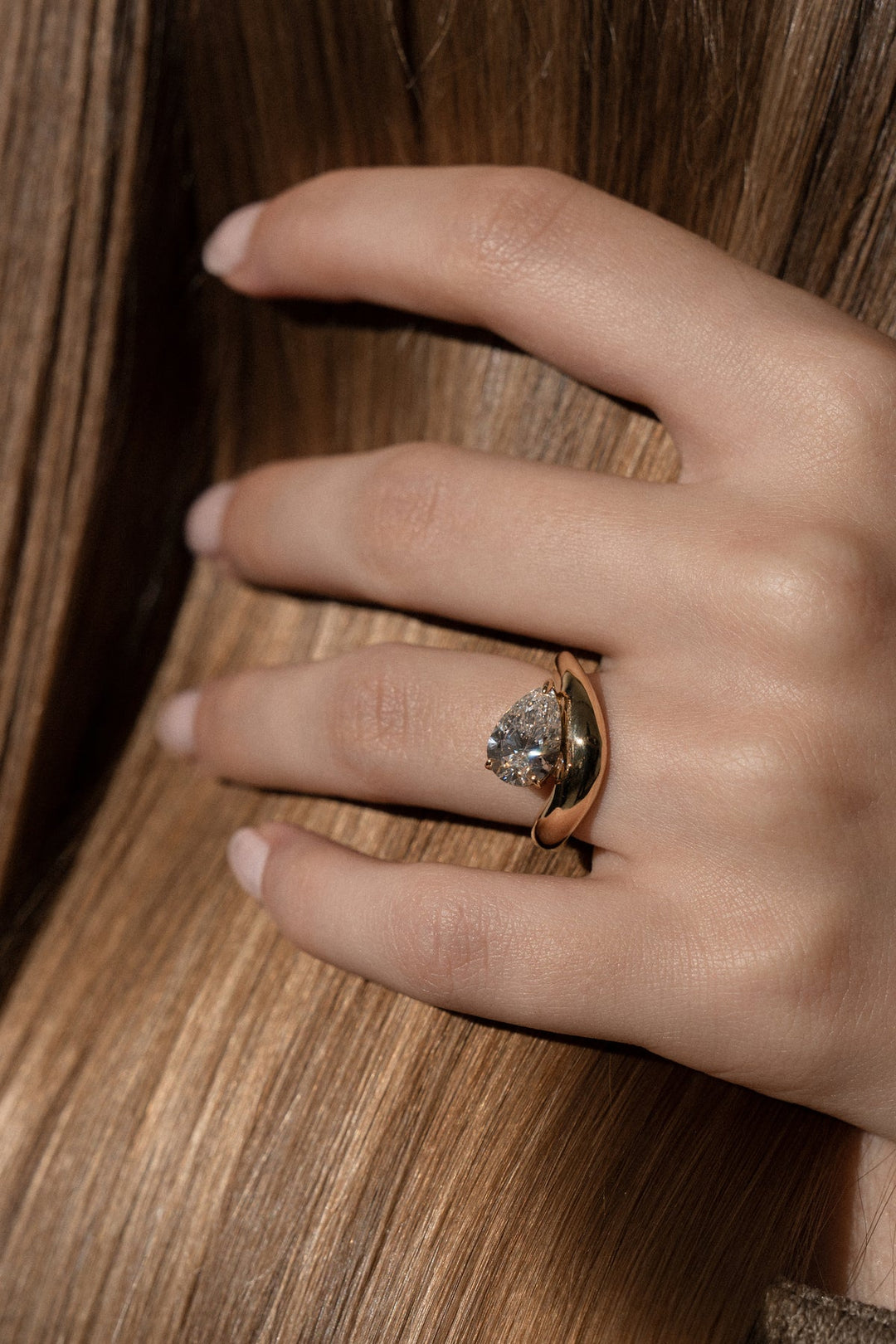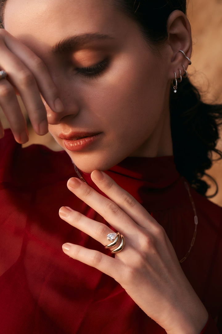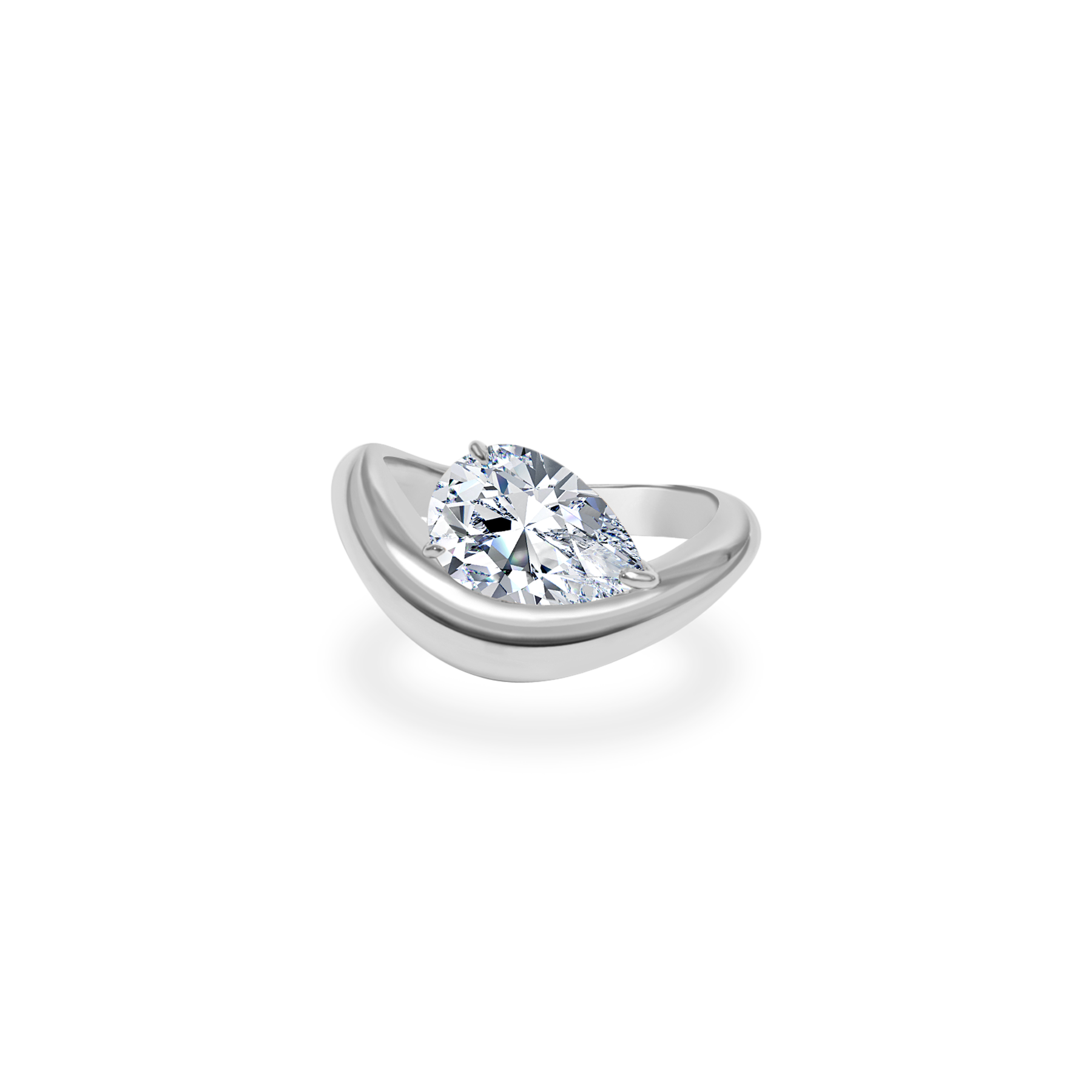 1.0CT-2.0CT Pear Cut Moissanite Diamond Wave Dome Engagement Ring