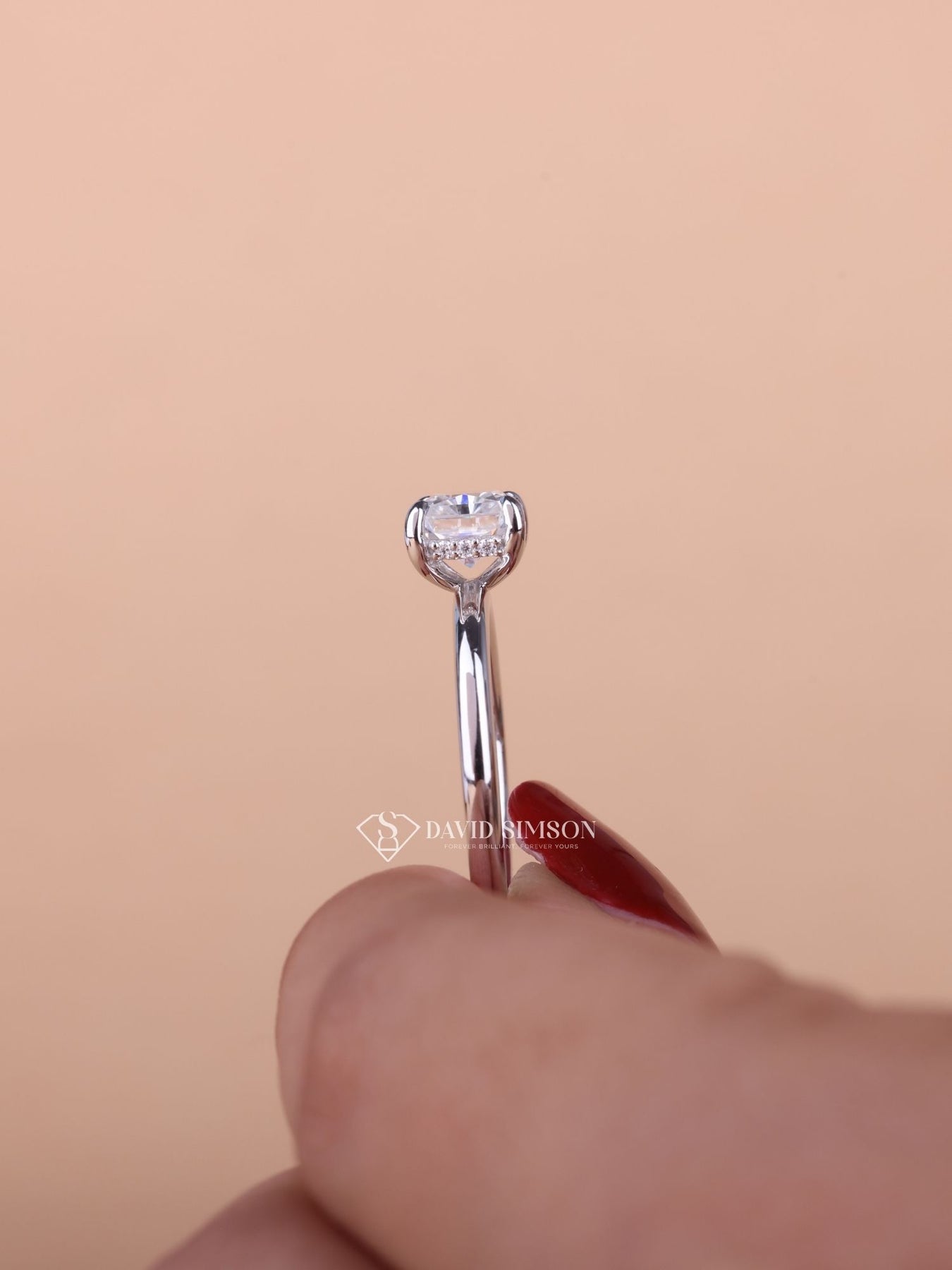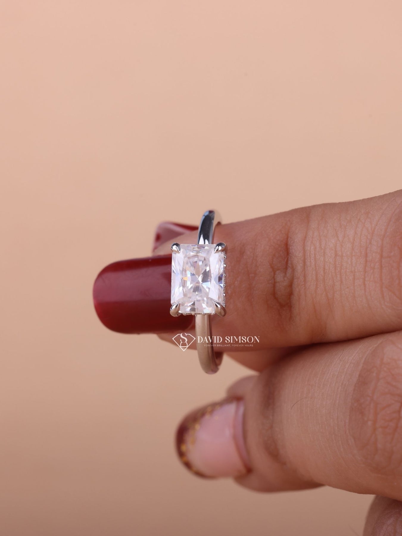 1.50CT-2.50CT Radiant Cut Moissanite Diamond Hidden Halo Engagement Ring