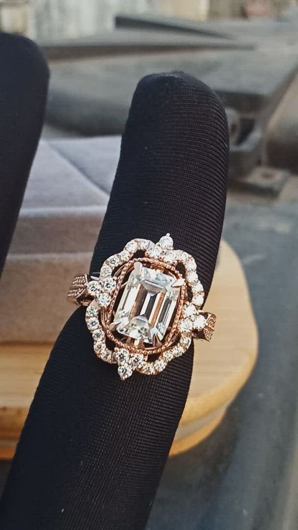 1.0CT Vintage Emerald Cut Diamond Moissanite Halo Engagement Ring