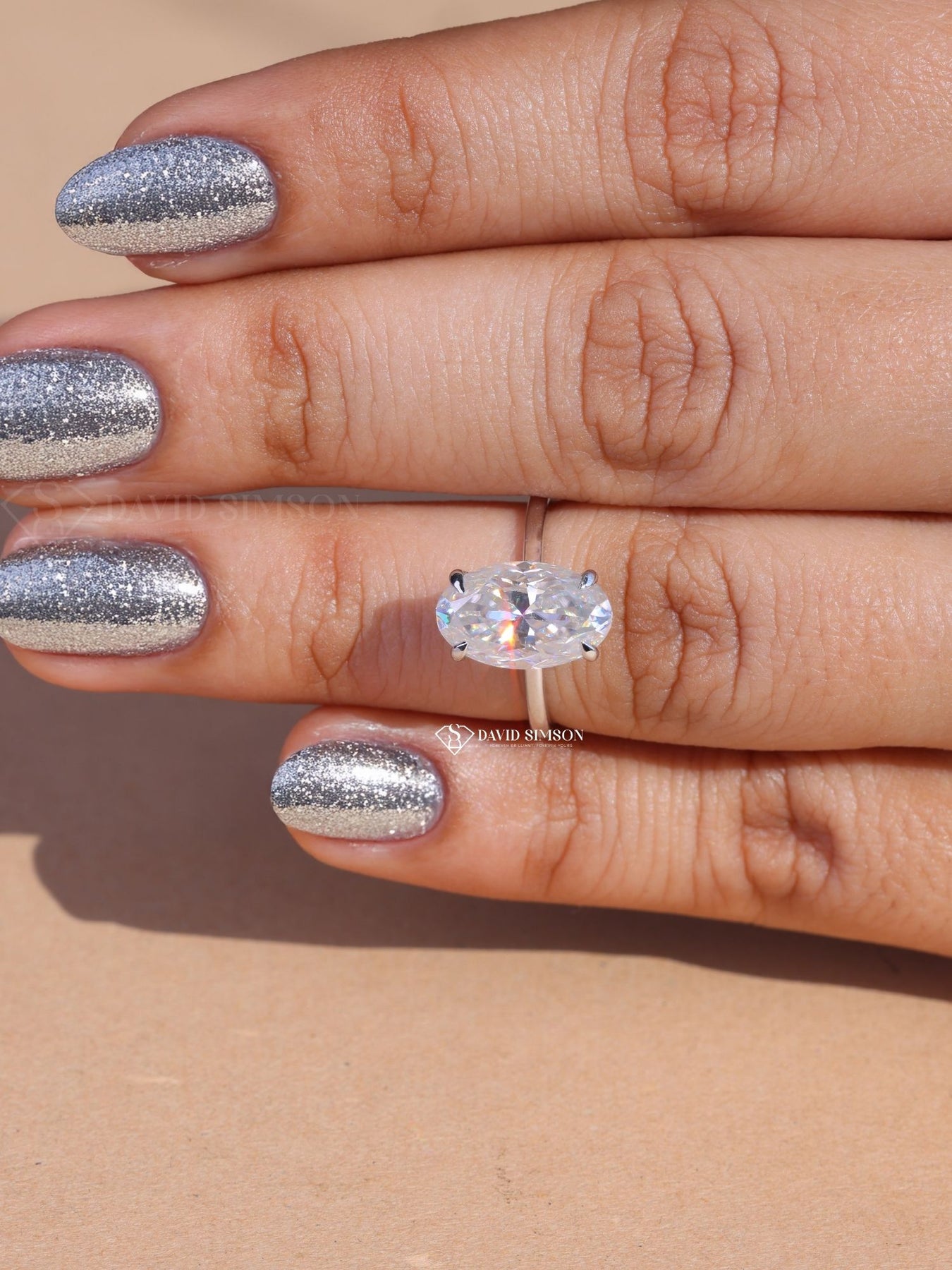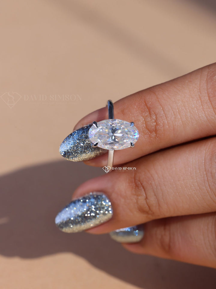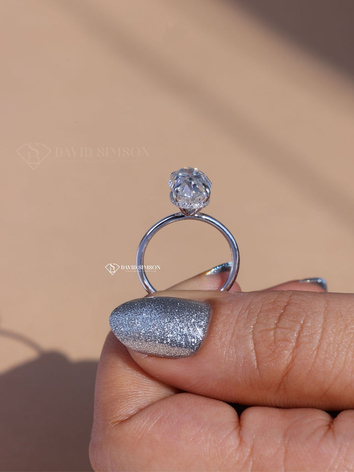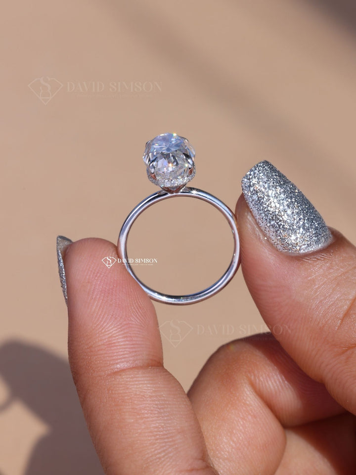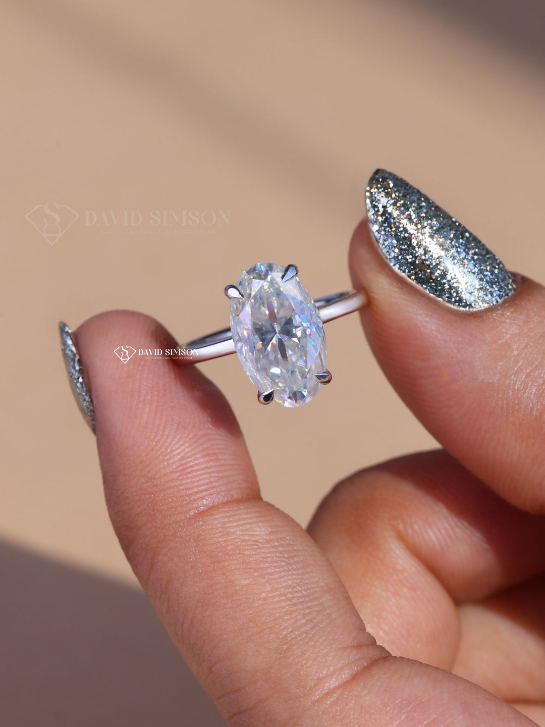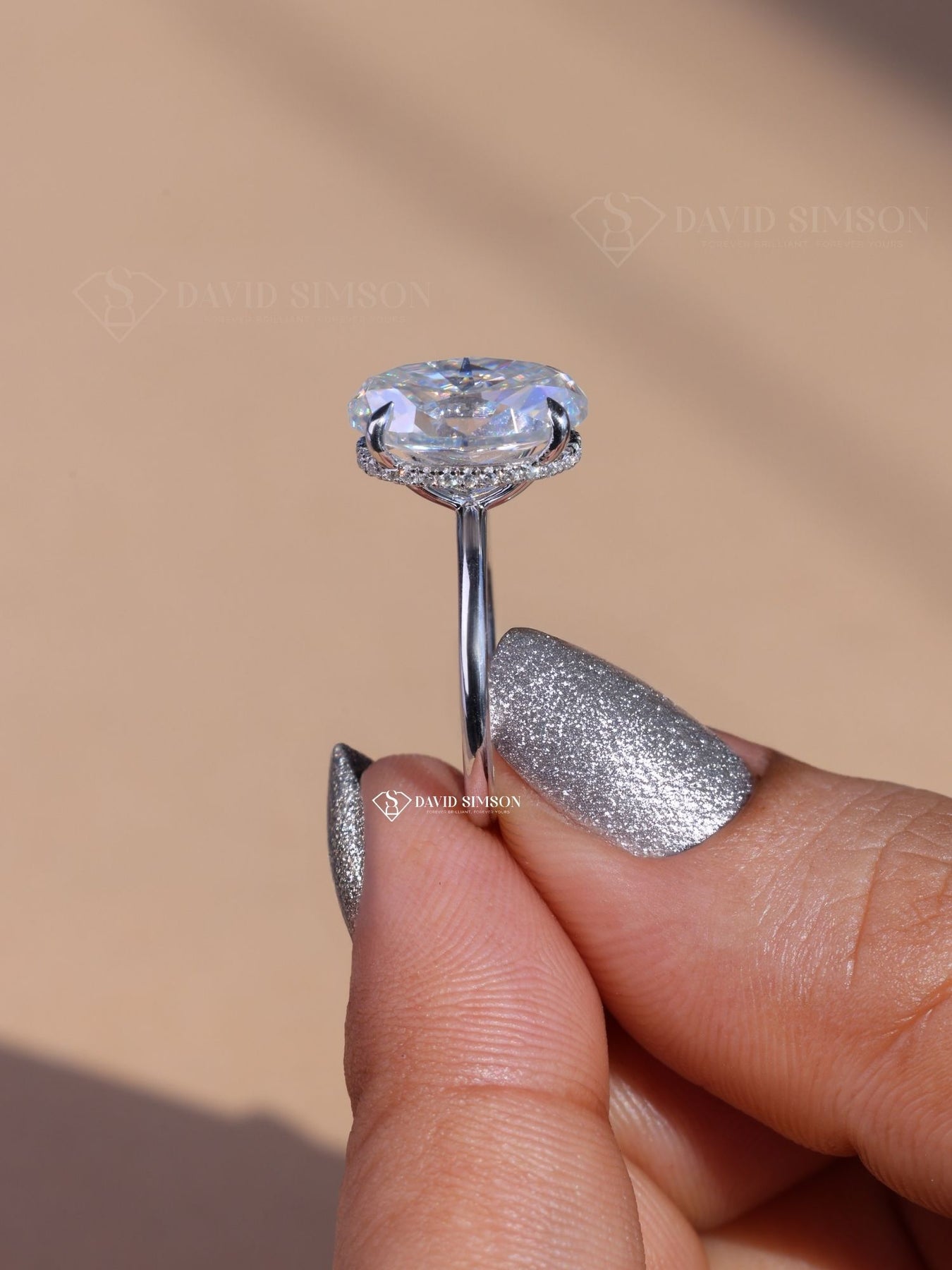 2.0CT-3.0CT Oval Cut Moissanite Diamond Hidden Halo Engagement Ring