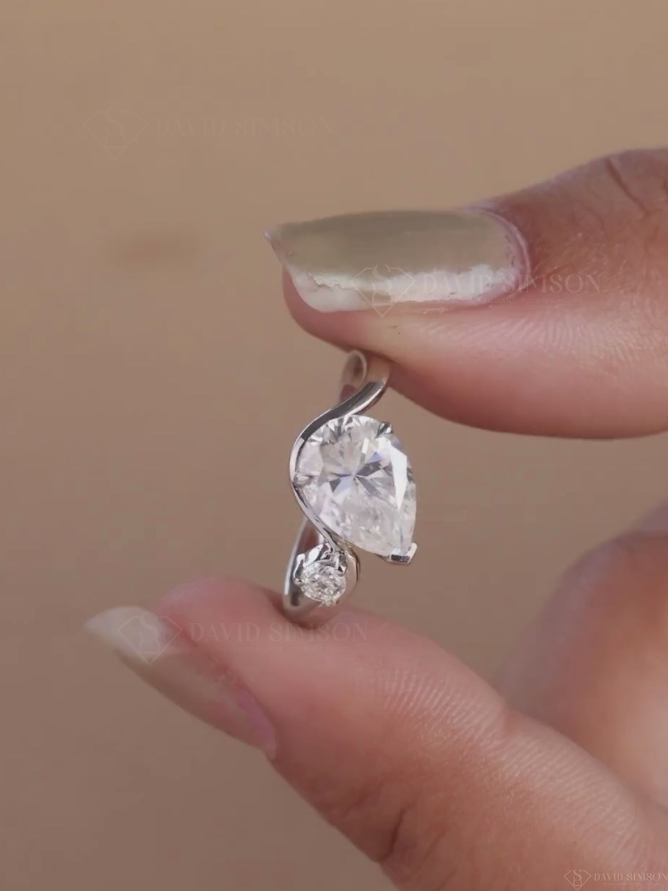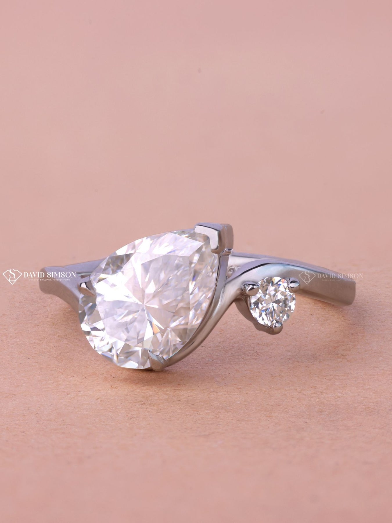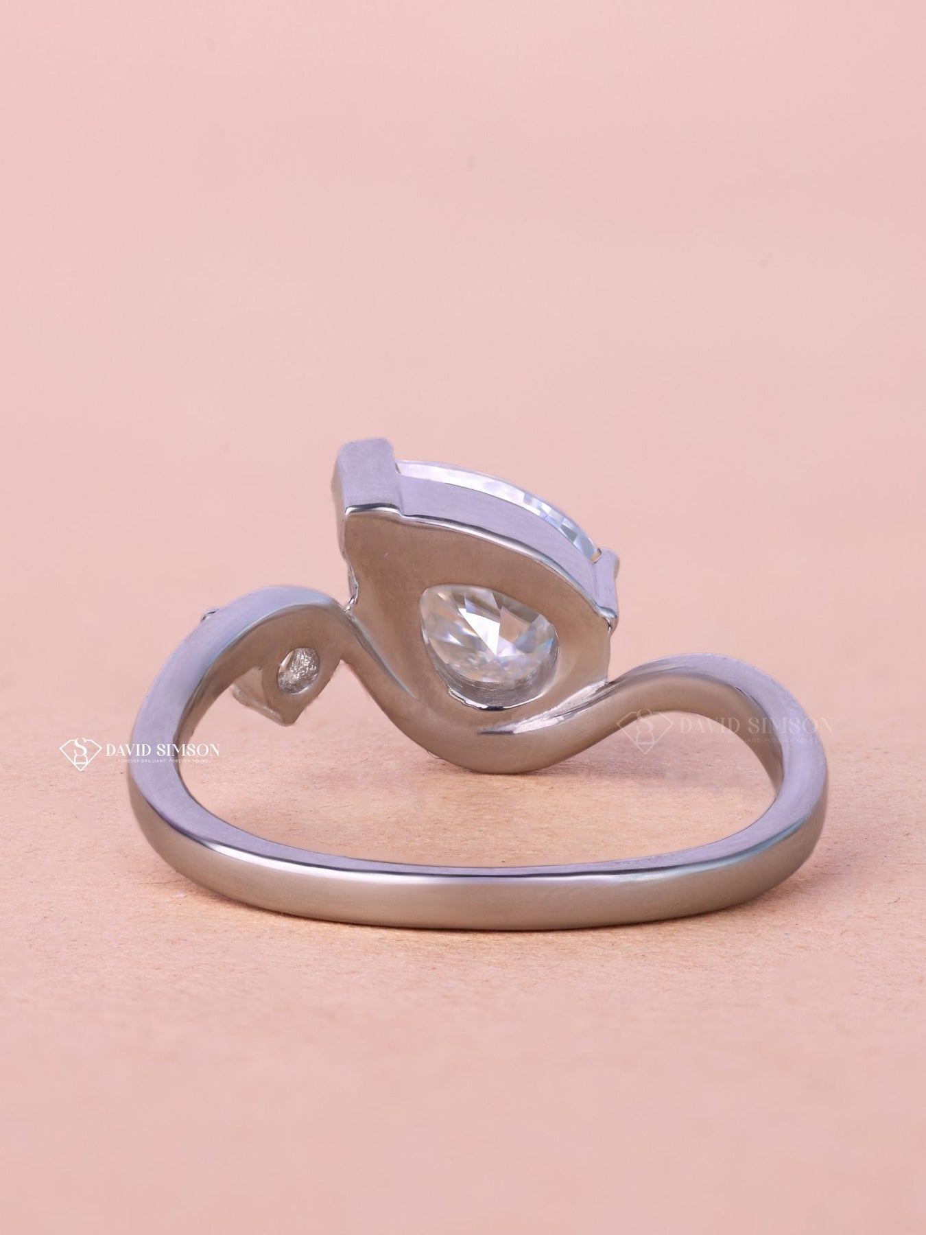 2.0CT-3.0CT Pear Cut Moissanite Diamond Curved Engagement Ring