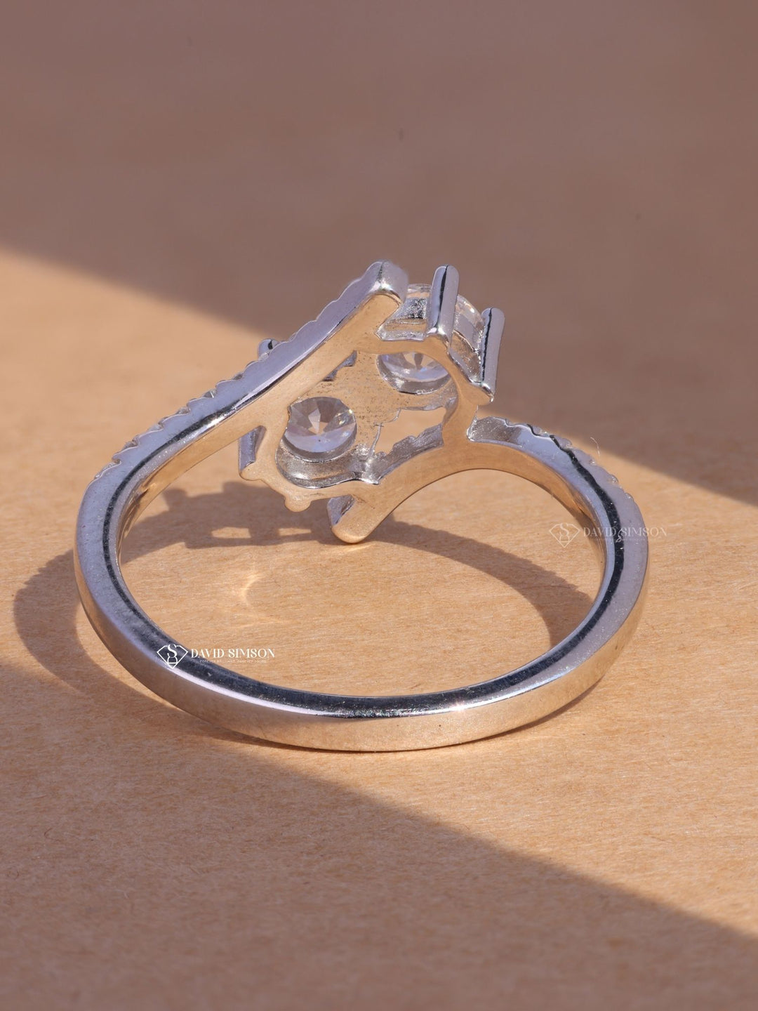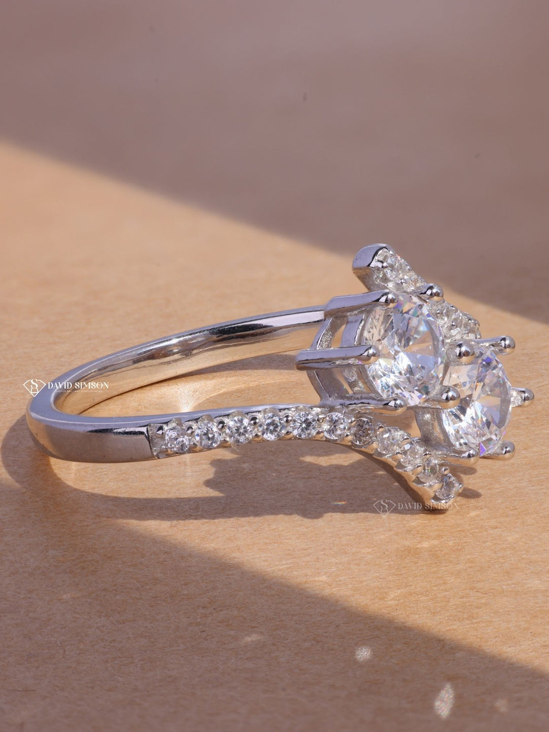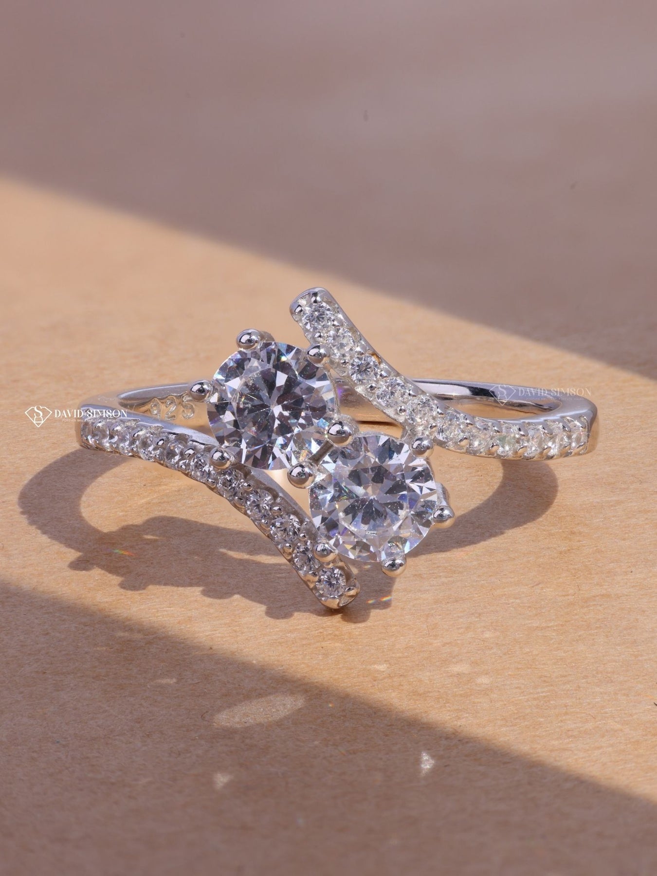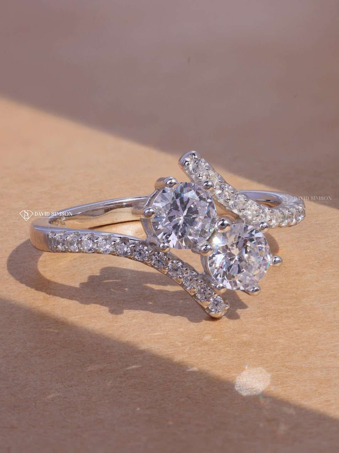 2.0CT Round Cut Moissanite Two Stone Bypass Diamond Engagement Ring