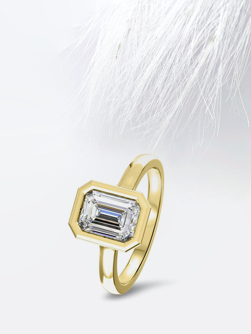 Bezel Set Emerald Cut Moissanite Diamond Engagement Ring