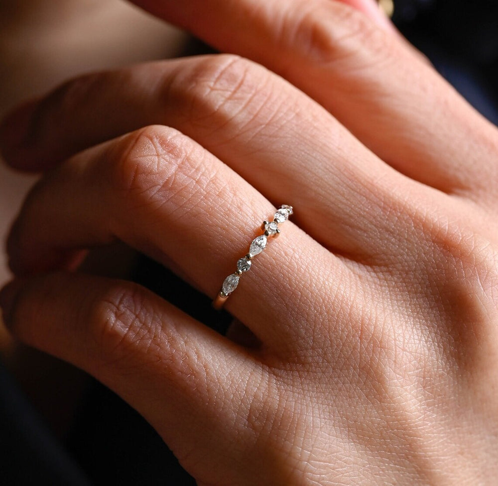 ✦ The Band Shown in the Picture Holds Beautiful 0.15 CT Round & Marquise Cut Moissanite.